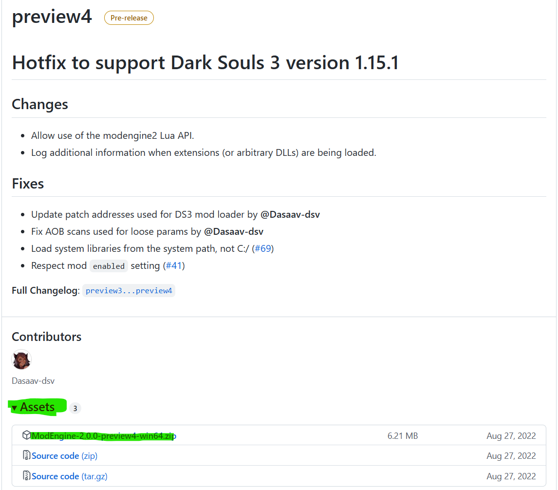 링크로 가셔서 Assets 항목을 클릭하면 파일 리스트가 나옵니다. 여기서 zip 파일을 눌러 다운 받으시면 됩니다. 그리고 압축 파일을 엘든링 실행파일이 있는 곳에 풀면 됩니다.